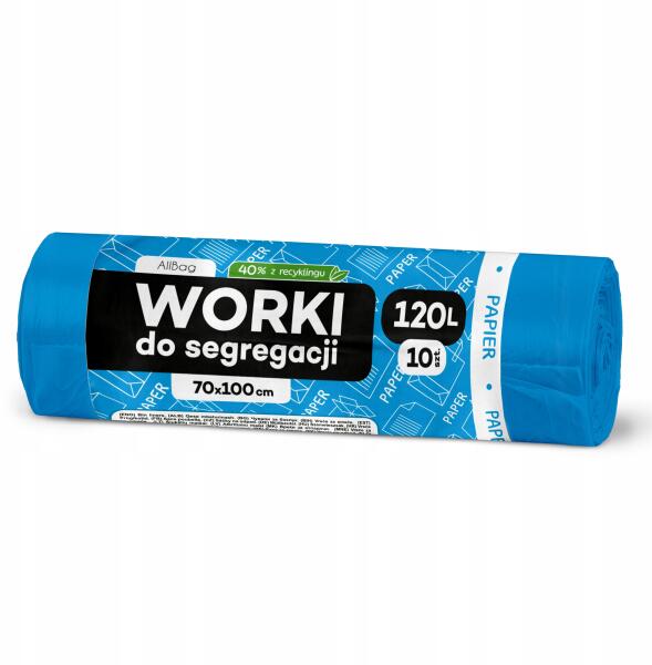 Allbag Papír szemeteszsák kék 120l 10 db szelektív hulladékgyűjtéshez (NIEBIESKIE WORKI NA ŚMIECI ALLBAG 120L)ALLEGRO