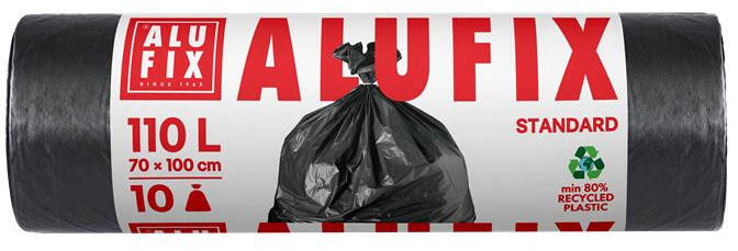Alufix Szemeteszsák, 110 l, 10 db, 70x110 cm, 25 , ALUFIX, fekete (MS110UNINEW) - bestoffice