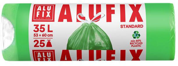 Alufix Szemeteszsák, zárószalagos, 35 l, 25 db, 53x60 cm, 15 , ALUFIX, zöld (MSZH35UNINEW) - bestoffice