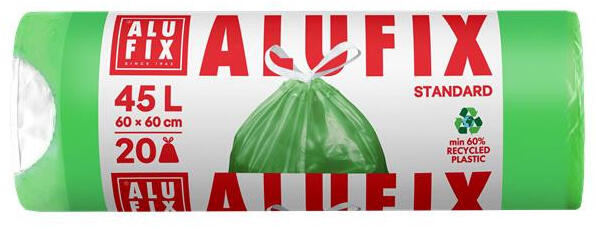Alufix Szemeteszsák, zárószalagos, 45 l, 20 db, 60x60 cm, 14 , ALUFIX, "Prémium", zöld (MSZH45UNINEW) - bestoffice