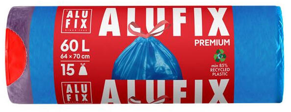 Alufix Szemeteszsák, zárószalagos, 60 l, 15 db, 64x71 cm, 26 , ALUFIX, kék (MSZ60UNINEW) - bestoffice
