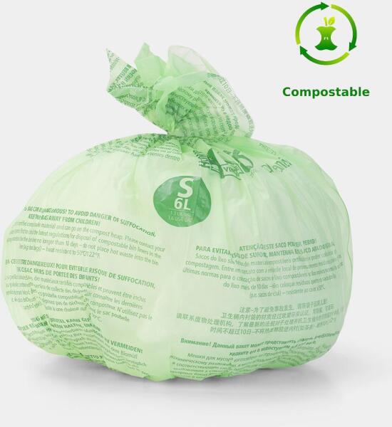 Brabantia komposztálható PerfectFit szemeteszsák (Code S) 6 liter, 10 darab - 419683 - tökéletesen illeszkedik a Brabantia szemetesekbe