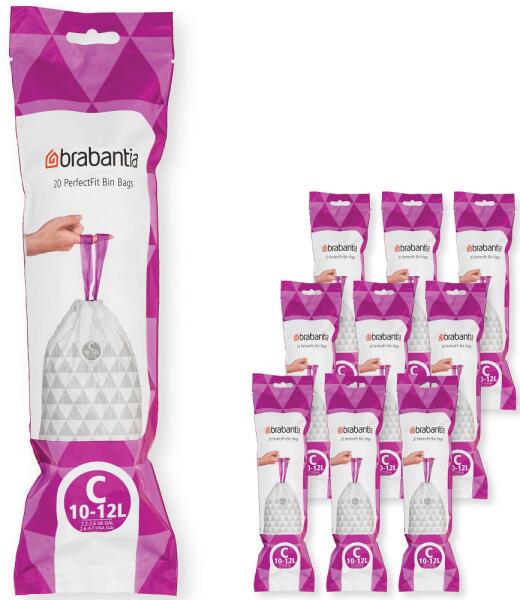 Brabantia PerfectFit szemeteszsák, C méret, 10-12L, Multipack 200 zsák, 10 tekercs, 20 zsák/tekercs - 137983 (137983)