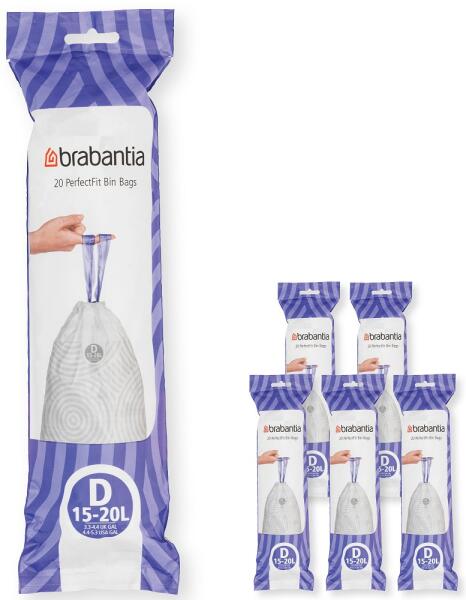 Brabantia PerfectFit Szemeteszsák - D Méret, 15-20 L, Multipack 120 Zsák, 6 Tekercs, 20 Zsák/Tekercs