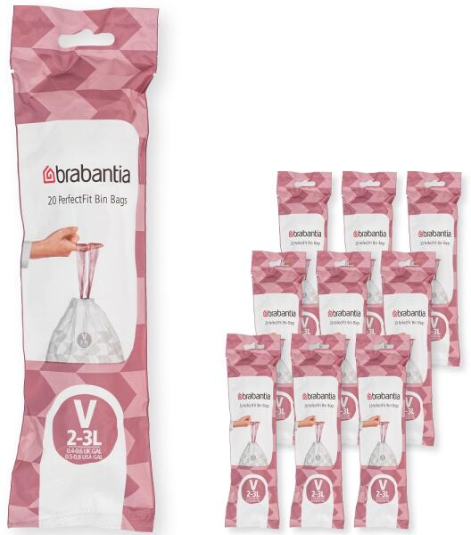 Brabantia PerfectFit Szemeteszsák - V Méret, 2-3 L, Multipack 200 Zsák, 10 Tekercs, 20 Zsák/Tekercs