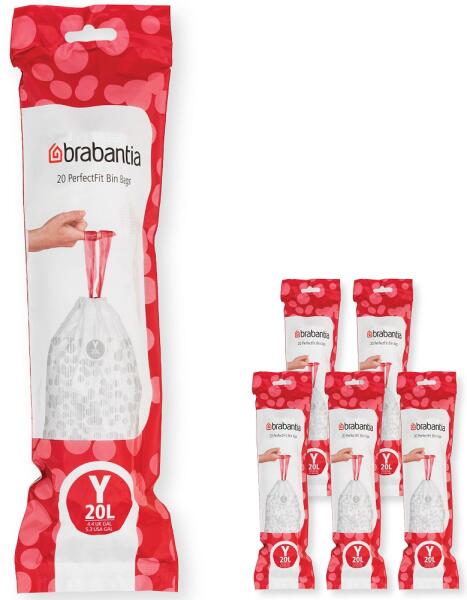 Brabantia PerfectFit Szemeteszsák - Y Méret, 20 L, Multipack 120 Zsák, 6 Tekercs, 20 Zsák/Tekercs