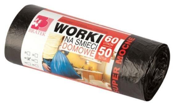 BRATEK ellenálló szemetes zsák 60 l, 50 db