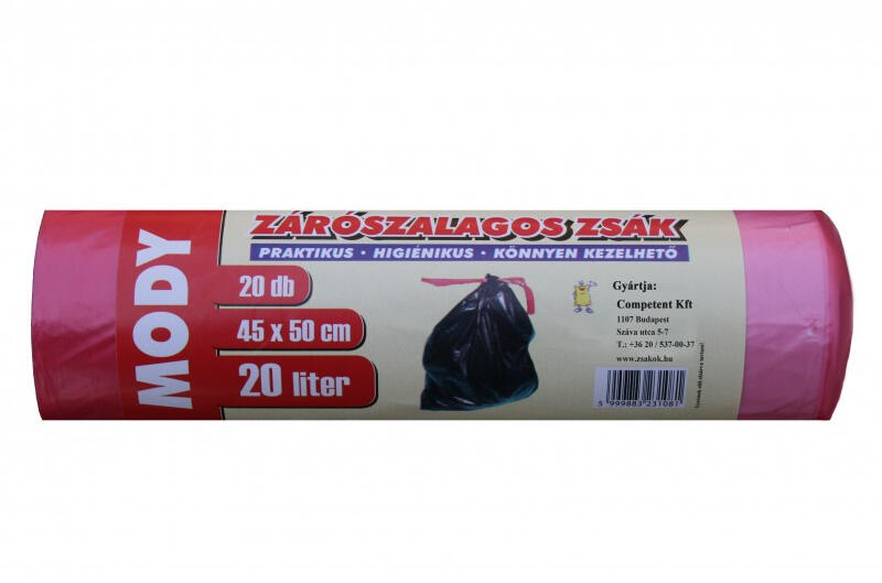 Competent Zárószalagos zsák 45x50, 20 literes, piros, 15mikron (11)