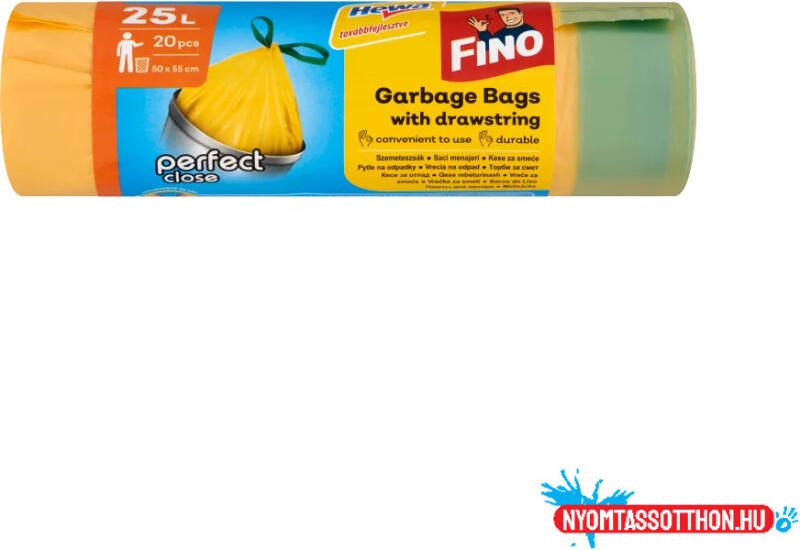 FINO Szemeteszsák önzáró szalaggal 25 liter 20 db/tekercs Fino sárga (42107) - nyomtassotthon