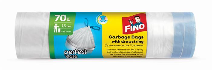 FINO Szemeteszsák, önzáró szalagos, 70 l, 15 db, 64x70 cm, 14 , FINO "Perfect Close", fehér (KHT1153) - irodasziget