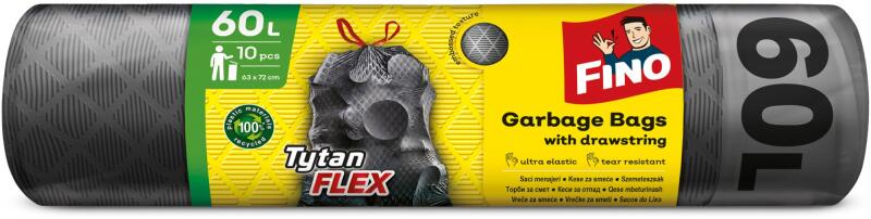 FINO Tytan Flex háztartási szemeteszsák, Zsinórral, 60l, 10db