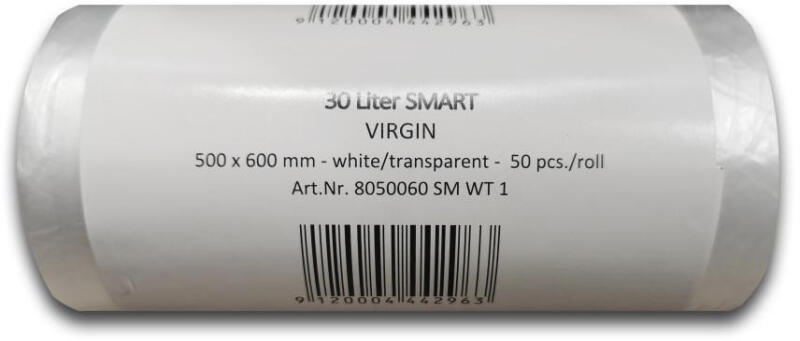 FOLISTAR HNAT Szemeteszsák Fehér/Átlátszó 50x60 cm, 30 L, Hdpe 50 db/Tekercs