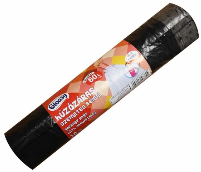 Glossy Szemeteszsák zárószalagos 60 liter 58 x 68 cm 10 db/tekercs Glossy fekete (K-11123-0251) - tonerpiac