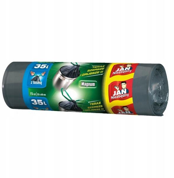 Jan Niezbędny Magnum Szemeteszsák Háztartási Hulladék Szalaggal 35L 15 Db (5900536104324)ALLEGRO