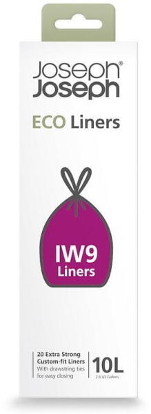 A Joseph Joseph Eco Grey húzózsinórral ellátott szemeteszsák készletben 20 darab 10 literes zsák található.
