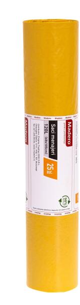 Madero Vastag LDPE szemeteszsák, 120l, 25db, Sárga