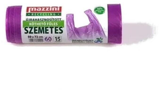 Mazzini Szemeteszsák köthető füles 60 liter 59 x 72 cm 15 db/tekercs újrahasznosított Mazzini_lilla (104037) - web24 teljes leírás »