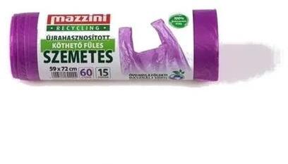 Mazzini Szemeteszsák köthető füles 60 liter 59 x 72 cm 15 db/tekercs újrahasznosított Mazzini_lilla - suplix