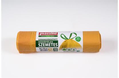 Mazzini Szemeteszsák, újrahasznosított, húzófüles, 70 l, 15 db, 64x70 cm, 18 , MAZZINI, sárga (khk916) - irodaszer
