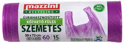 Mazzini ÚJRAHASZNOSITOTT KÖTHETŐ FÜLES SZEMETESZSÁK 60. l 15. db/roll