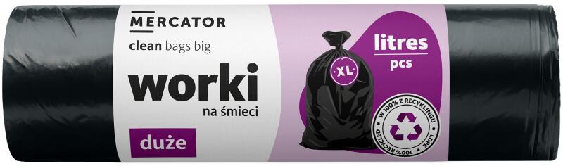 A fekete színű Mercator szemeteszsák vastag, 100%-ban újrahasznosított LDPE fóliából készül. Tartós, szakadásálló és a perforációnak köszönhetően egyszerűen használható.  Háztartásoknak, munkakörnyezeteknek.  Mercator szemeteszsák, XL méret A Mercator szemeteszsák praktikus és megbízható háztartásoknak, munkakörnyezetben vagy az egészségügyi intézményekben. Erős, 100%-ban újrahasznosított LDPE fóliából készül, ellenáll a szakadásnak és a szivárgásnak. Perforált tekercsen. A zsákok nagy kapacitása okán ajánlott a nagy hulladékmennyiséget felhalmozó munkaterületek számára. Ez a műanyagfajta jellemzően háztartási és ipari fóliák újrafeldolgozásból származik. Költséghatékony, környezetbarát. TERMÉKJELLEMZŐK méret: 69x102 cm űrtartalom: 120 l szín: fekete kötés/zárás: hagyományos fólia vastagsága: 22 m kiszerelés: 25 dbméret: 90x140 cm űrtartalom: 240 l szín: fekete kötés/zárás: hagyományos fólia vastagsága: 30 m kiszerelés: 25 db
