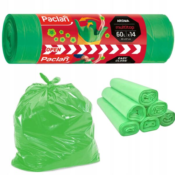 Paclan Szemeteszsákok Paclan Univerzális Zöld 60 Liter 14 Db Tekercs Erős Sláger (NN-HPK-S014-001)