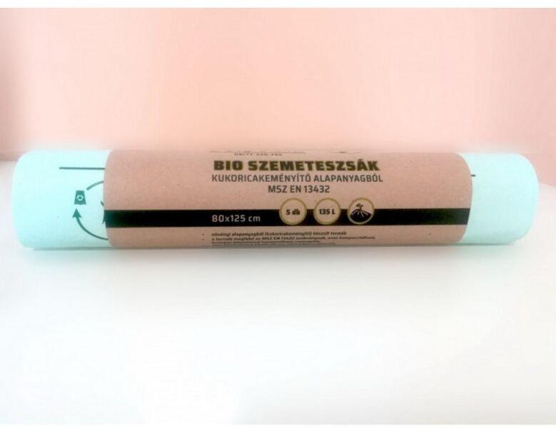 - Lebomló szemeteszsák, kukoricakeményítő alapú, PLA, 800x1250x0.03 mm, 135 literes (valós méret 200L), 5 db/tekercs