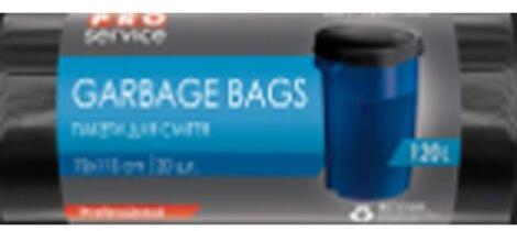 Pro Servis 120l-es szemeteszsákok 20db tekercsen, 70x110cm méret, fekete, 21 mikron, anyaga LDPE