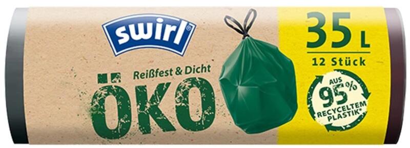 A Swirl ökoszemeteszsákok űrtartalma 35 liter, és egy csomag 12 darabot tartalmaz. A kiváló minőségű, 3 rétegű fóliának köszönhetően szakadásbiztosak és nem szivárognak. A szemeteszsákok 95%-ban újrahasznosított anyagból készülnek, így hozzájárulnak a hulladék mennyiségének csökkentéséhez. Továbbá folyadékálló aljjal rendelkeznek, amely megakadályozza a folyadékok kifolyását.
