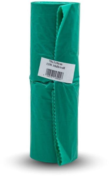 Szemeteszsák 135 liter 70 x 110 cm 30 mikron 10 db/tekercs zöld - tonerpiac