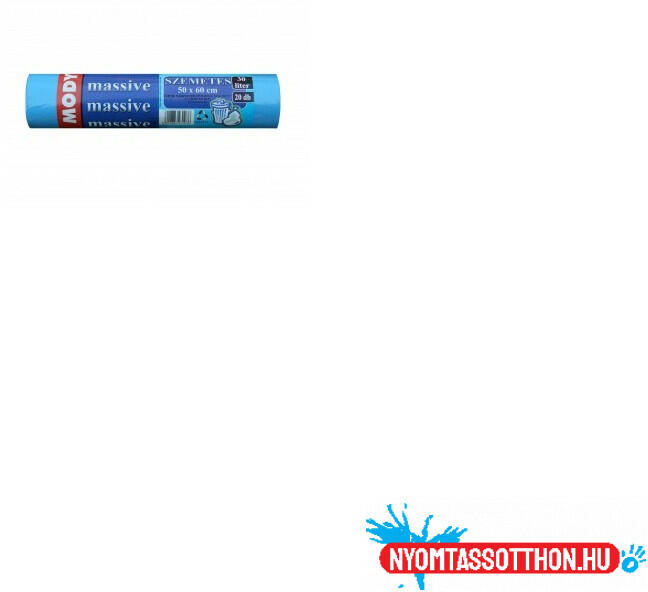 Rollnizott szemeteszsák otthoni és irodai felhasználásra Méret: 50x 60 cm Űrtartalom: 30 liter Vastagság: 10 mikron Szín: kék Kiszerelése: 20 zsák/tekercs, 25 tekercs/gyűjtő Fantázianév: Massive Gyártó: Competent Kft.