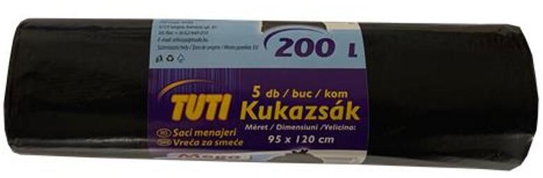 Szemeteszsák, extra erős, 200 l, 5 db, 95x120 cm, 38 , TUTI "Mega", fekete (PDP_542) - iconink