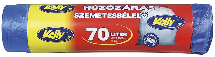 Szemeteszsák zárószalagos 70 liter 55 x 80 cm 15 db/tekercs Kelly kék