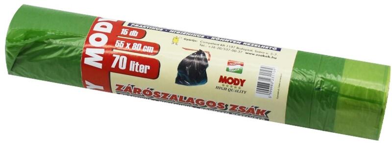 Szemeteszsák zárószalagos 70 liter 55 x 80 cm 15 db/tekercs zöld (46872)