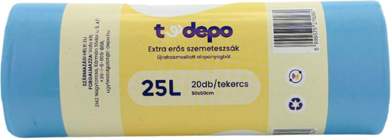 Erős szemeteszsák 25 literes űrtartalommal. Egy tekercs 20 db zsákot tartalmaz.