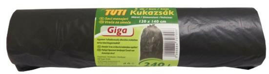Giga erős kukazsák nagyobb méretű kukákhoz. - űrtartalma: 240 liter - méret: 120 x 140 cm - kiszerelés: 5 db - vastagság: 40 micron