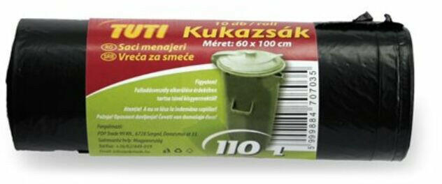 TUTI Szemeteszsák, 110 l, 10 db, 60x100 cm, 17 &mikro; , TUTI, fekete (KHT195) (PDP_021)