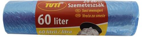 TUTI Szemeteszsák, 60 l, 20 db, 55x65 cm, 9 , TUTI, kék (PDP_020) - molnarpapir