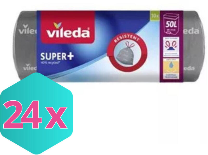 Vileda Super+ zárószalagos szemeteszsák 50Liter, 10db KARTON - 24x10 db (K4023103168237)