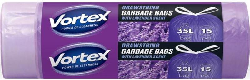 Vortex Szemeteszsák, zárószalagos, 35 l, 15 db, 50x60 cm, HDPE, 15 , VORTEX, levendula illattal (MSZ3515VORTEXSCENTLA) - nyomtassingyen