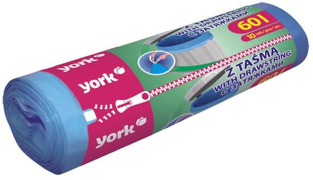 York PL090620 Szemeteszsák - Húzózsinórral, 10 db, 60 L